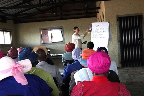 Ik ben onderweg naar Hammanskraal. Het zoveelste ritje van deze week. Gistermiddag appte Mma (mevrouw) Rebecca. Ze had een vraag en die wilde ze me persoonlijk stellen. Al enige maanden volgt ze verdiepend onderwijs. Ze luistert altijd aandachtig, maakt gretig aantekeningen en vraagt vaak om extra Bijbelteksten over dit onderwerp. Na een autorit van 45 minuten ben ik bij haar huisje. Ze staat al op me te wachten. Ik mag plaatsnemen op haar bank; daar staan al een glas zelfgemaakte mangosap en wat koekjes op me te wachten. Een groot gebaar. Want verder ziet het er armoedig uit.
